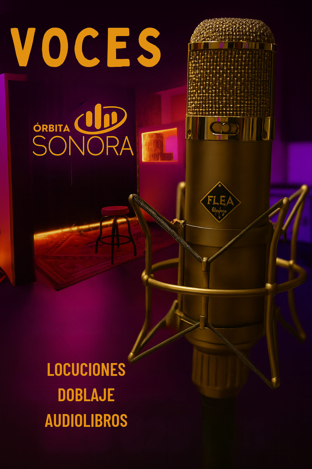 En Órbita Sonora ponemos nuestro estudio al servicio de la postproducción audiovisual. Contamos con una extensa biblioteca de foley y efectos, así como con la mejor microfonía y hardware analógico para la grabación de locuciones, doblaje y audiolibros con calidad impecable.